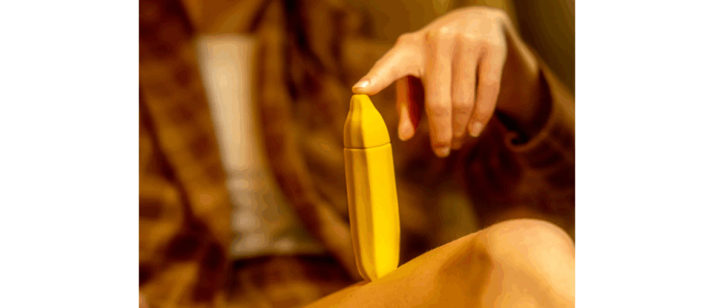 Another playfully-shaped vibrator, the Emojibator Banana looks like a tiny (not lifesize!) caricature of a banana until you know its secret: it also vibrates! 10 vibration modes and its super-slender size help this sex toy fit where its wanted for discreet pleasure.