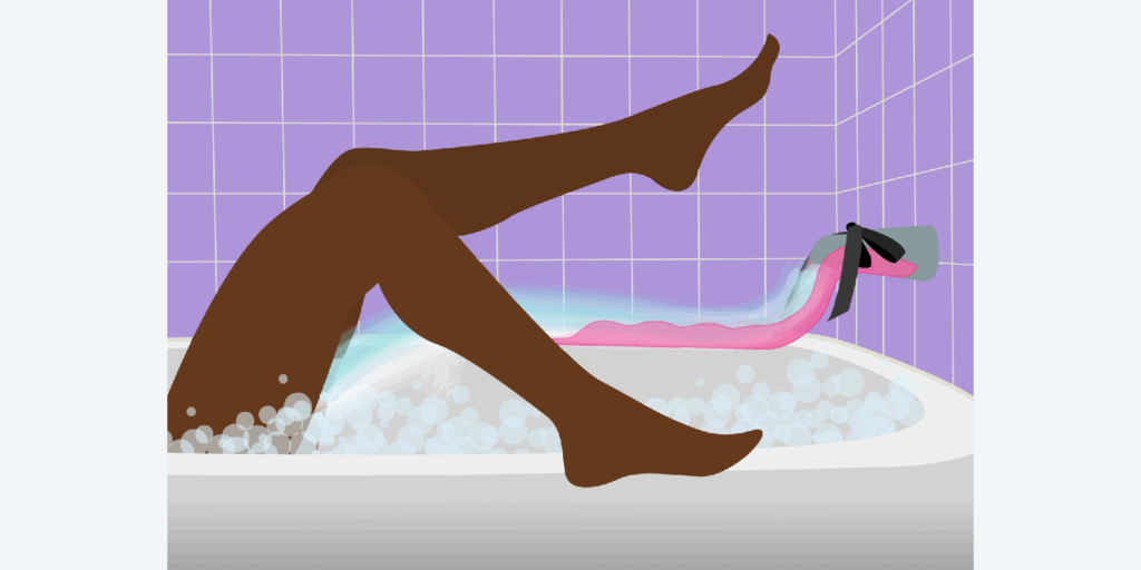 Essentially, the Waterslyde extends your bath's water spigot, making it easier to get the orgasmic pounding of running water between your legs without performing Olympian feats of flexibility. With an tie-on design, it can be tied onto the spigot and removed within seconds, making it one of our favorite discreet sex toys for women.